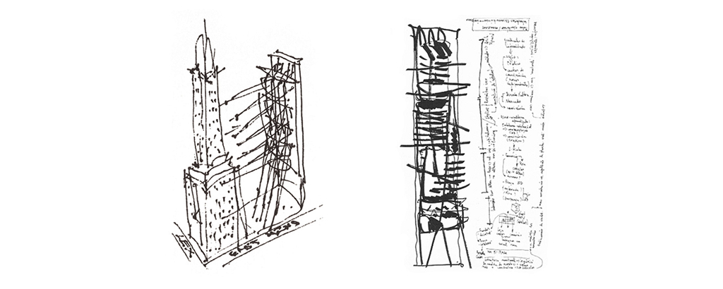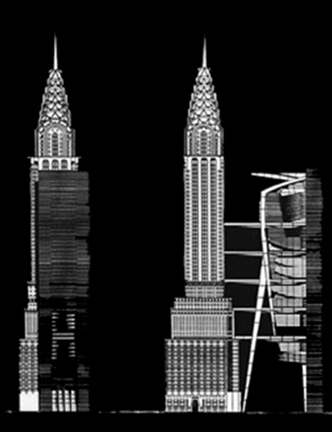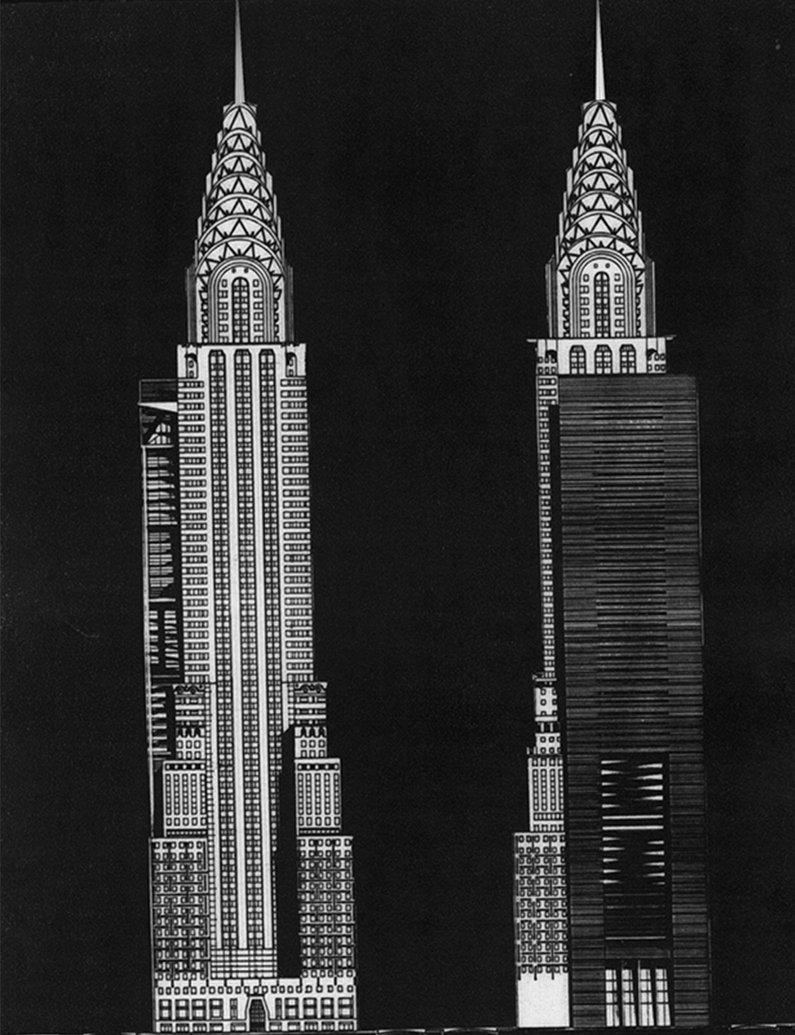 Nova York, EUA 1994Um arranha-céu multifuncional de 90 000 m² com usos justapostos (hotel, escola, teatros, cinemas, escritórios, espaços comerciais etc.), adjacente a um ícone histórico em um dos quarteirões mais movimentados de Manhattan. O complemento para o Chrysler Building, em Nova York (tema do último Van Allen International Student Design Competition), pretende ser uma resposta natural a um complexo de relações dimensionais, tipológicas, estruturais e espaciais, num momento de redefinição de parâmetros conceituais dos arranha-céus.