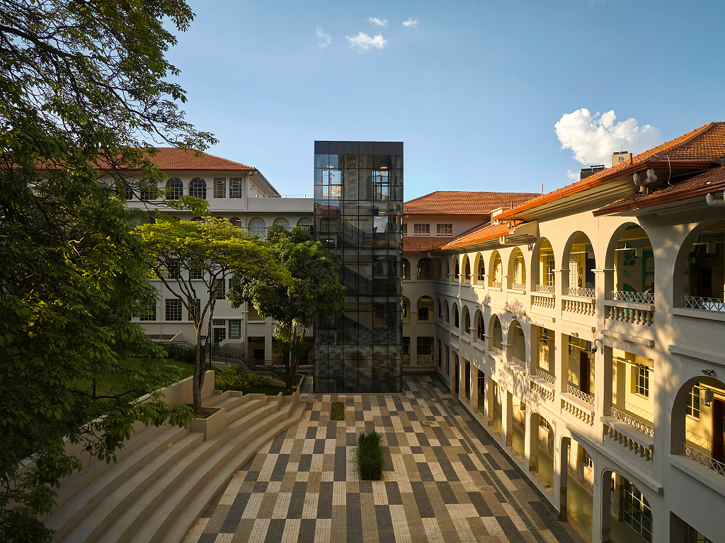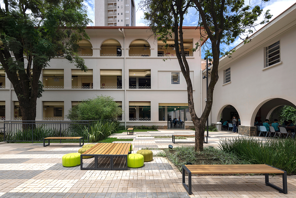 O projeto eliminou as improvisações feitas ao longo do tempo, que descaracterizaram a arquitetura original da edificação, propondo intervenções cuidadosas que reforçam as qualidades da implantação geral, arquitetura, interiores e paisagismo da edificação existente. A ampliação da instituição causou o mínimo impacto na área tombada, por meio da demolição dos anexos atuais e sua substituição por novos elementos que dialogam com a escala e materialidade do edifício existente. A nova arquitetura é claramente contemporânea e seus elementos foram inseridos de maneira sensível e harmoniosa com o caráter tradicional do Colégio, atendendo às demandas das normas vigentes – como acessibilidade, proteção contra incêndio, entre outros – e às necessidades intrínsecas a uma instituição de ensino dos dias de hoje.