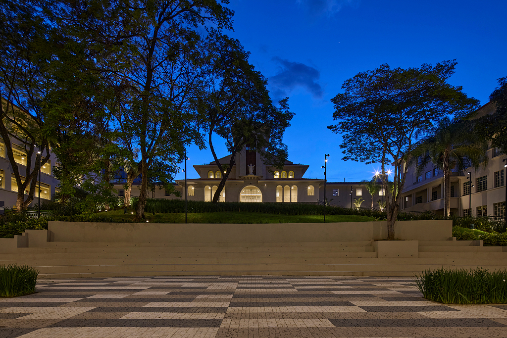 As diretrizes de intervenção foram divididas em três áreas distintas no terreno, que precisavam se integrar de forma harmoniosa para garantir o bom funcionamento da instituição. A primeira é a “Área de Preservação Permanente”, onde estão situadas as edificações tombadas. Essas estruturas passaram por restaurações e adaptações para atender às novas demandas institucionais, preservando suas características arquitetônicas originais. A segunda é a “Área Preservação Paisagística”, que valoriza suas características vegetativas e contemplativas, aprimorando a qualidade paisagística do ambiente. A terceira é a “Área de Expansão”, destinada à construção de novos anexos e equipamentos, que complementam as edificações tombadas e as áreas livres permeáveis e buscam uma integração harmoniosa de todo o conjunto.