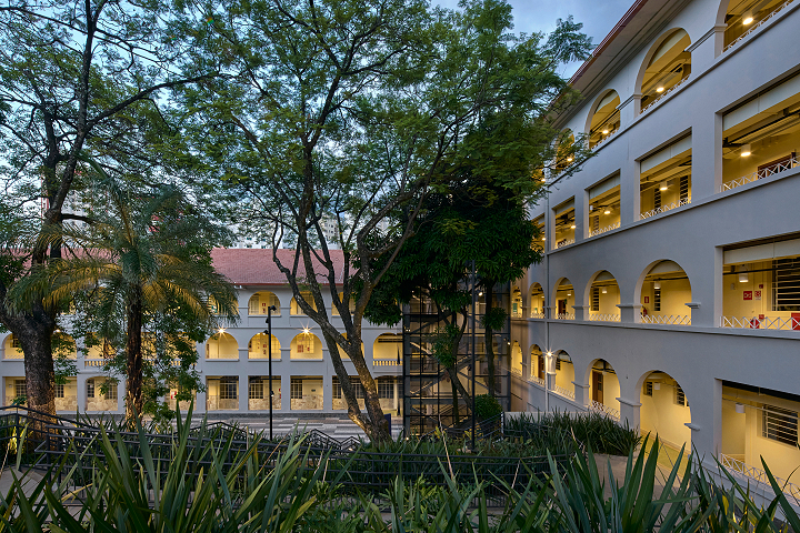 A nova unidade do Colégio Bernoulli, assinada pelo escritório BCMF Arquitetos, acaba de ser inaugurada no bairro Cidade Jardim em Belo Horizonte. Desta vez, em um imóvel histórico e icônico, presente há 70 anos no coração da cidade, que hoje, após 4 anos desocupado, escreve um novo capítulo na história do edifício. Construído em 1950 para abrigar o colégio Sacre Coeur de Jesus, o projeto original é de autoria do engenheiro e arquiteto Vicente Buffalo. A construção tinha capacidade de acomodar cerca de 300 alunos e contava com espaços destinados a atividades educacionais e religiosas. Em 1977, o tradicional Colégio Pitágoras assumiu o local e permaneceu em atividade até o final de 2021, seguindo presente, ainda hoje, na memória de quem o vivenciou.