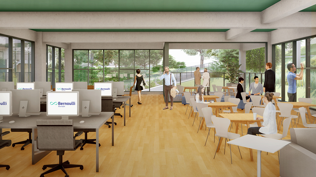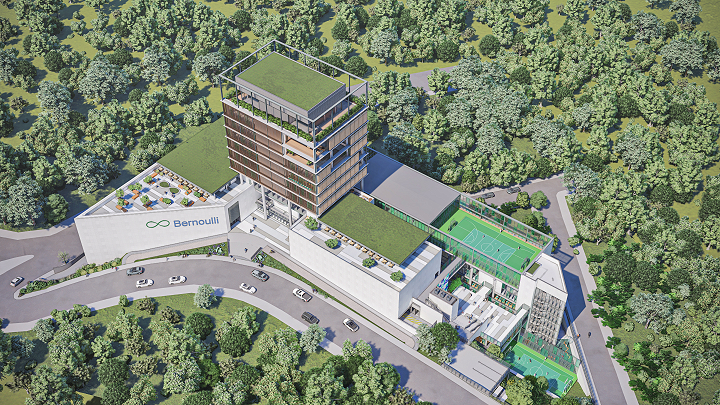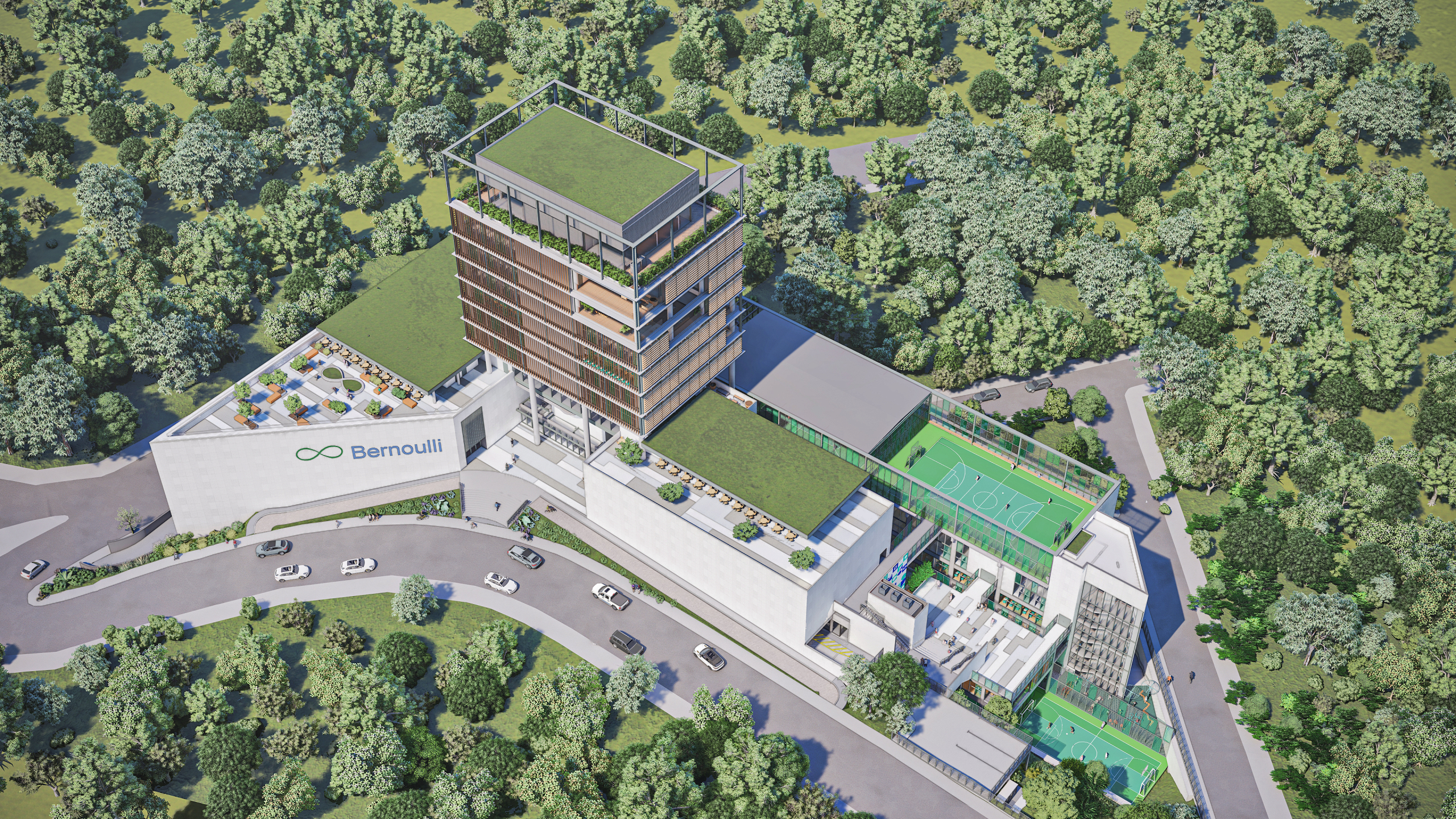 O prédio, projetado para ser tecnológico e sustentável, possui uma infraestrutura moderna e funcional. Para seguir o conceito de construção consciente e alinhar ao compromisso do Bernoulli com a prática de sustentabilidade, os espaços terão ventilação natural do ambiente e aproveitamento de luz natural visando reduzir os impactos à natureza, melhorar a eficiência energética e promover conforto térmico.
