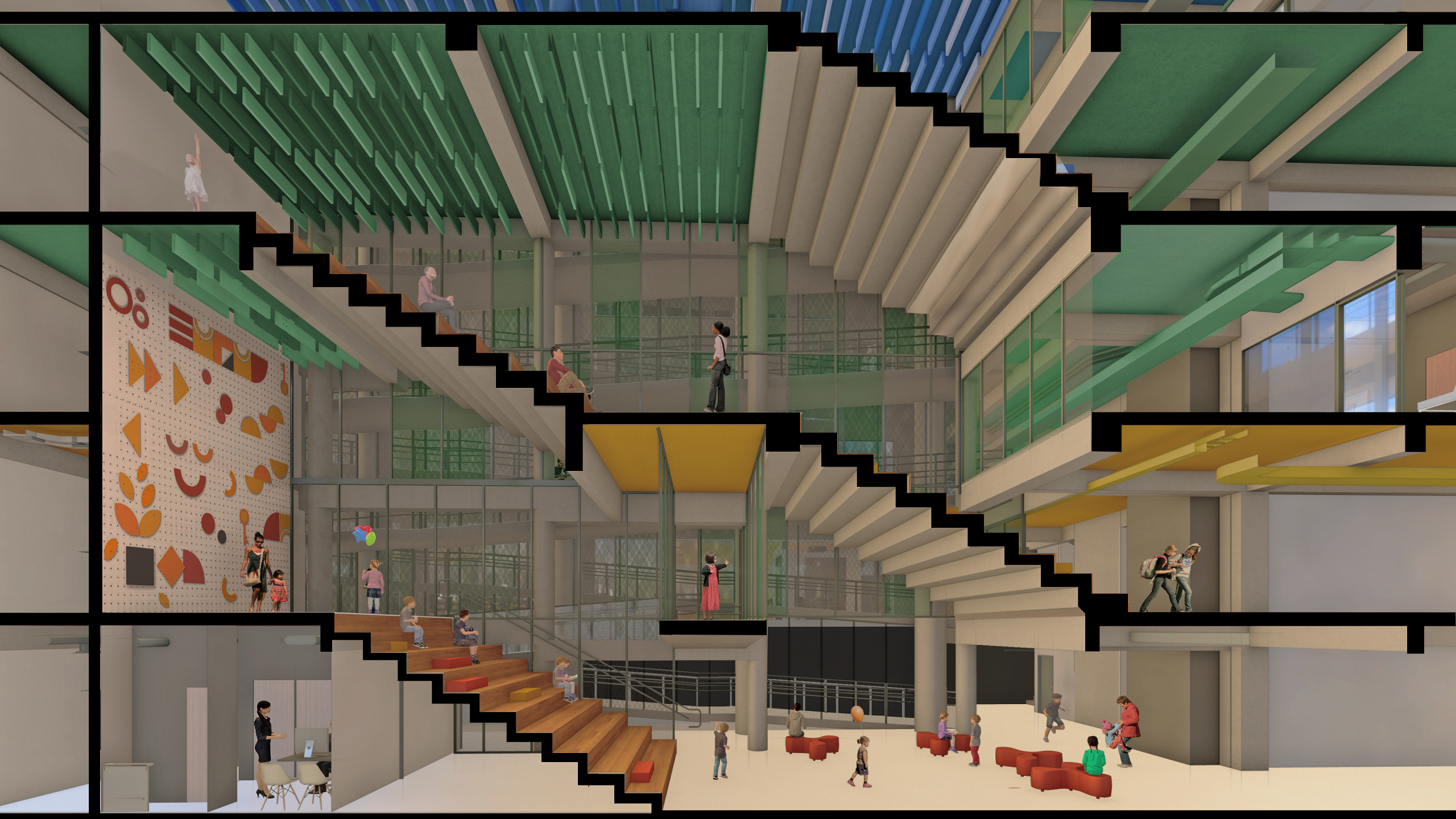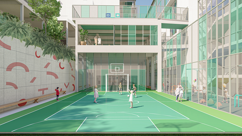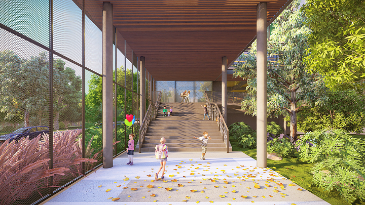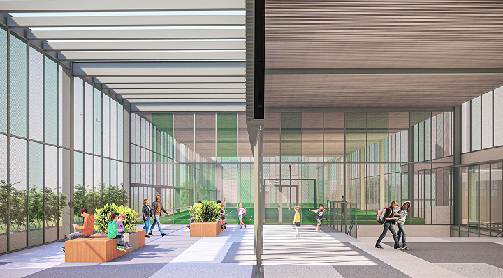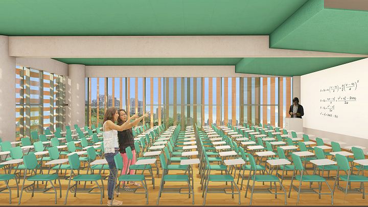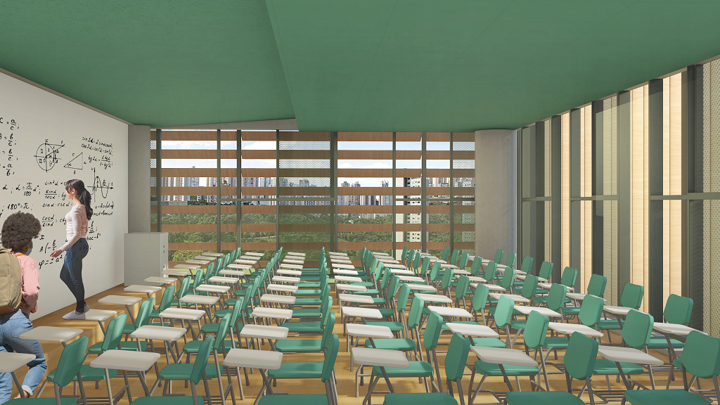 A nova escola terá cerca de 40.000 m² e contemplará espaços espetaculares para esportes, arte, música, maker, cozinha pedagógica, laboratórios e teatro, além de soluções para adequar a estrutura e as ocupações às questões de mobilidade, como horários diferentes de entrada e saída de alunos, para diluição da circulação de automóveis no entorno. Contará , também, com vagas para veículos de transporte escolar, drives de embarque e desembarque de estudantes, carros de aplicativo e staff para apoio logístico.