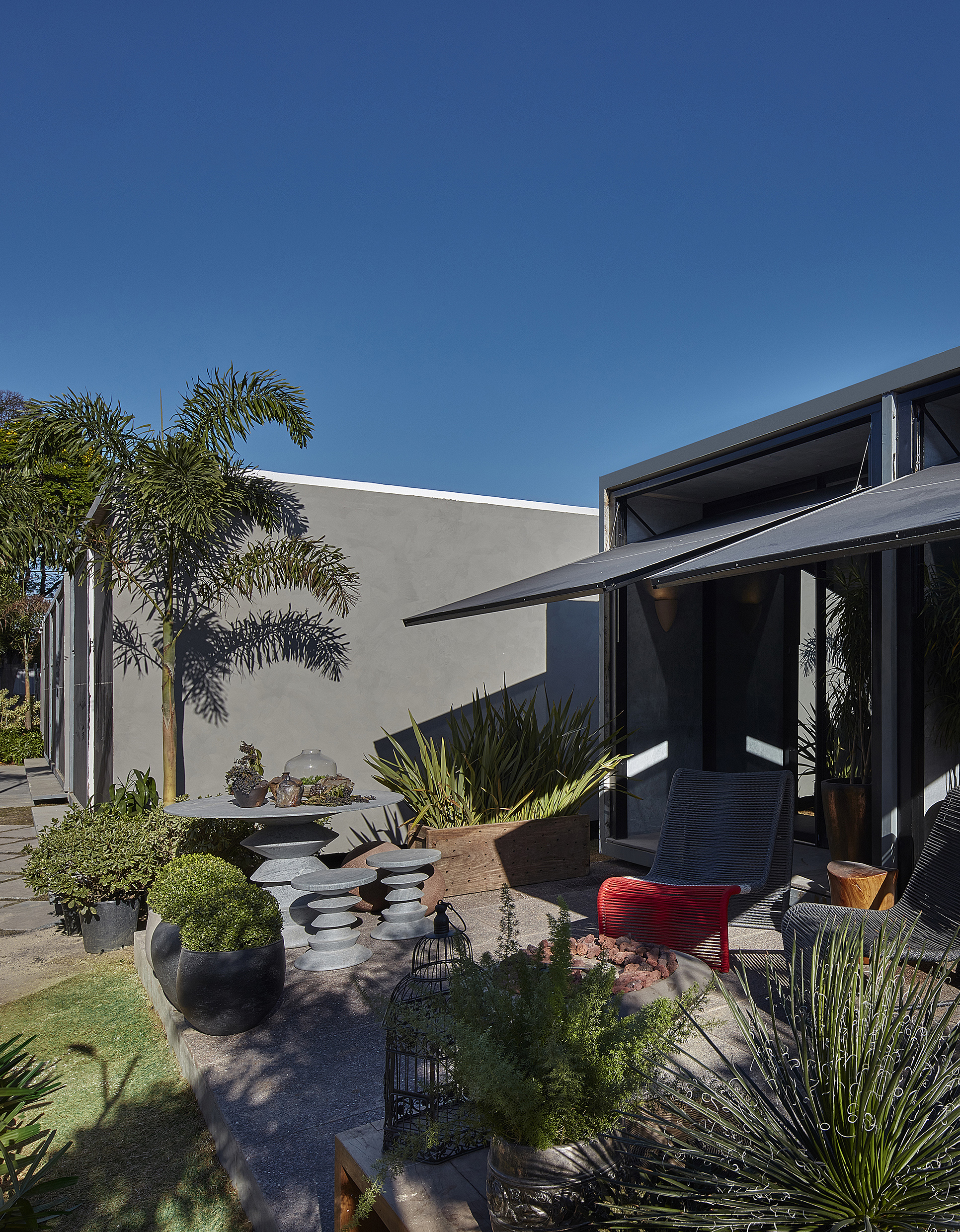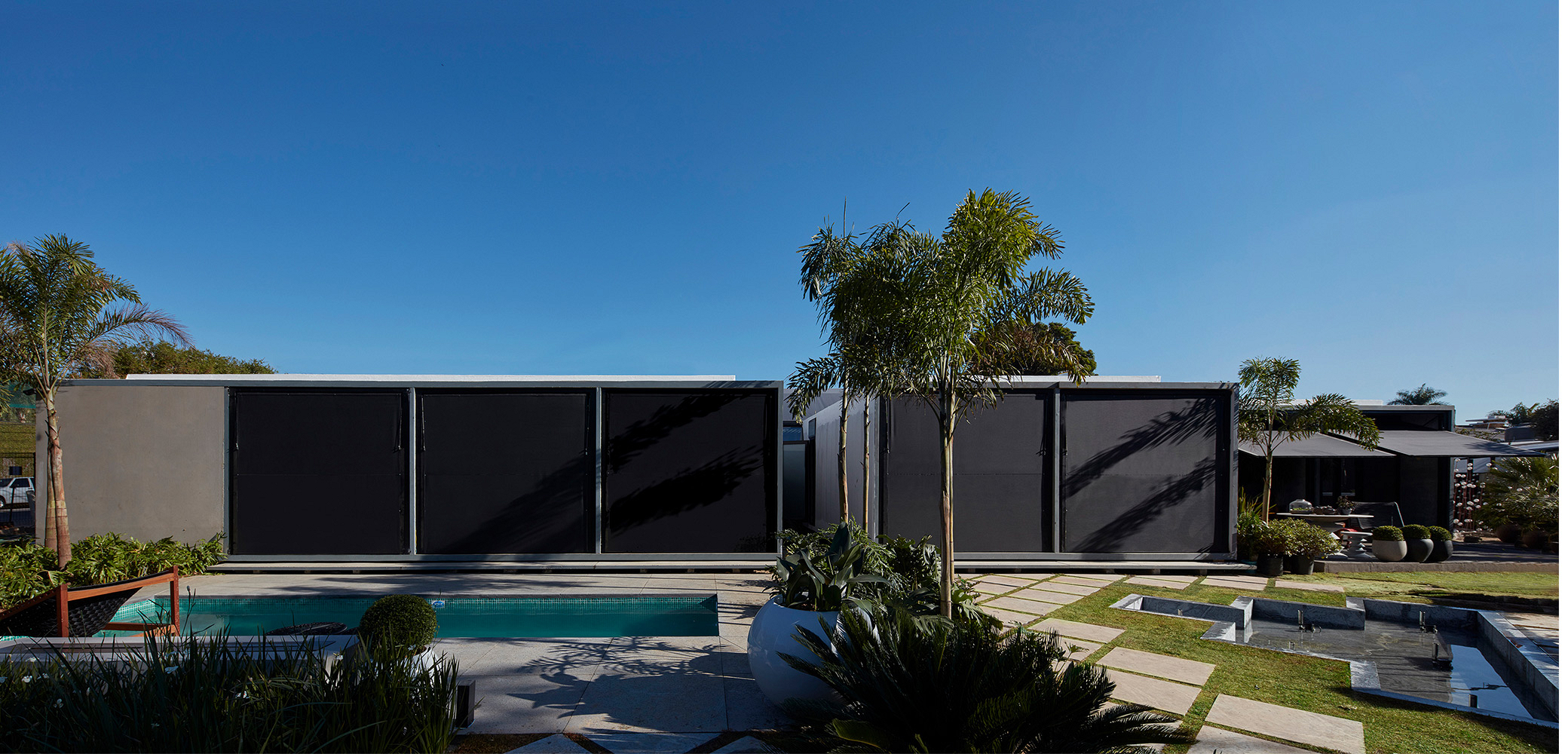 O projeto da Casa N é o resultado de vários estudos sobre essa temática do “pre-fab”, que culminaram em um protótipo que é o arranjo de um sistema feito exclusivamente para a Casa Cor Minas. Esse sistema é composto basicamente por oito módulos de tamanho padronizado (7 x 3 x 3m), que são completados por outros componentes menores, configurados de acordo com a geometria e orientação do terreno. Varandas, terraços, piscina, pérgulas e esquadrias amplas e recuadas ajudam a criar áreas de transição e integrar o interior ao exterior.