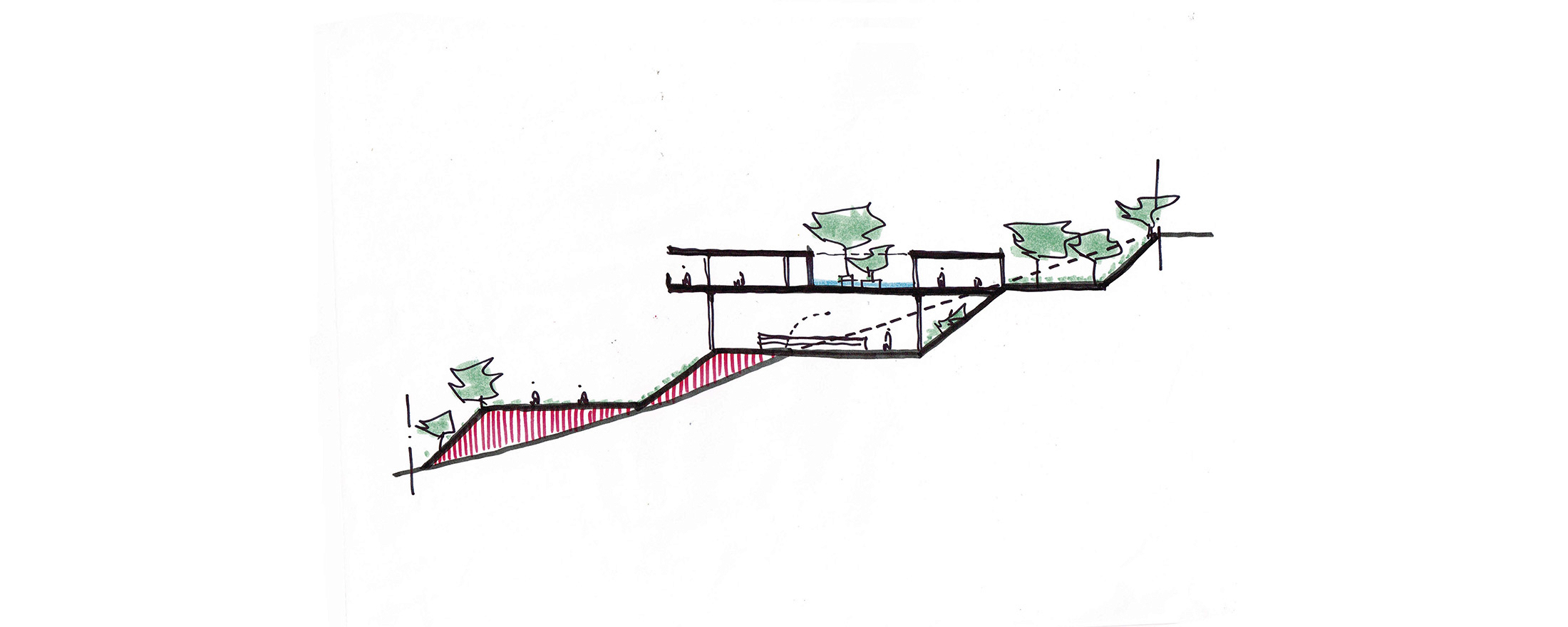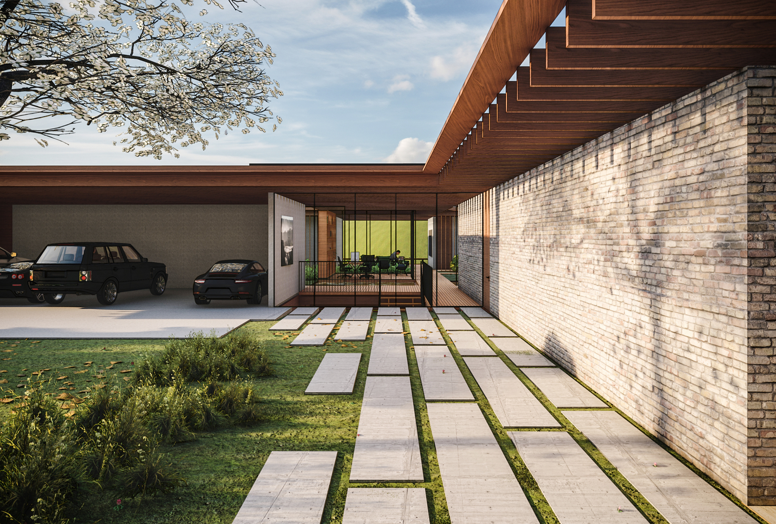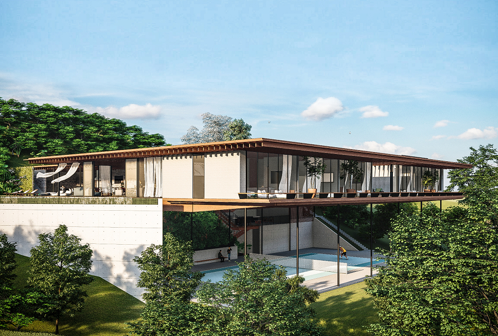 Nova Lima, MG, Brasil 2020A casa Vale dos Cristais foi projetada para uma família de aficionados por tênis, em um terreno com cerca de 4.800m² e forte declive, no final de uma rotatória no Vale dos Cristais. O programa com cerca de 800m² da casa se desenvolve em apenas um nível, e basicamente coincide com as dimensões da quadra (20 x 40m), funcionando também como sua cobertura (com pé-direito de 9m).