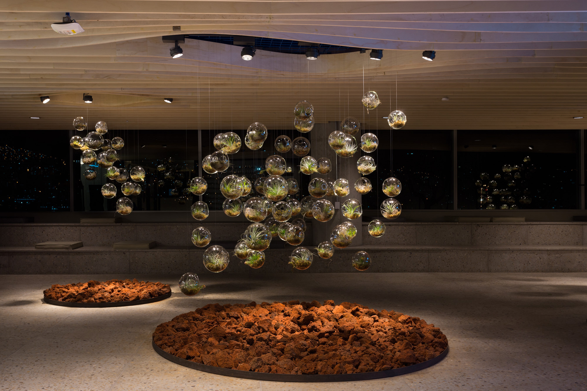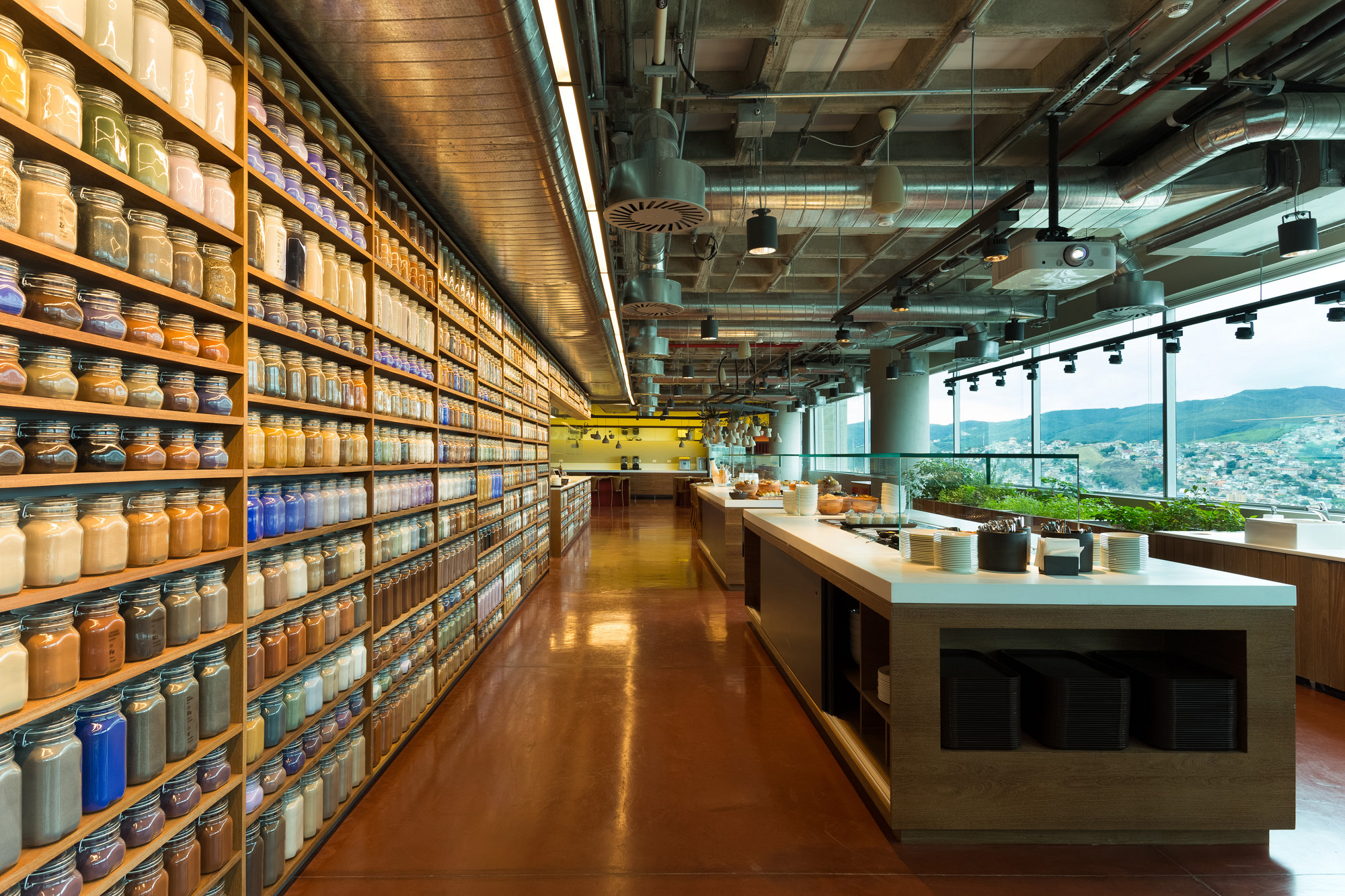 Café / Temperos Minerais: o Café (restaurante) é um espaço crucial na cultura do Google, e a forte referência à gastronomia de Minas Gerais foi o ponto de partida. Máximo Soalheiro, uma importante referência na arte contemporânea brasileira, foi convidado para ser responsável pela instalação “Temperos Minerais”. Enfileirados nas estantes do Café, os 2116 potes englobam todo o espectro de minerais encontrados em Minas Gerais. Combinados em diferentes “receitas”, eles resultam em 200 tons de uma paleta de cores extraordinariamente local e autoral, montada como uma grande tabela periódica contendo os elementos da paisagem em volta.