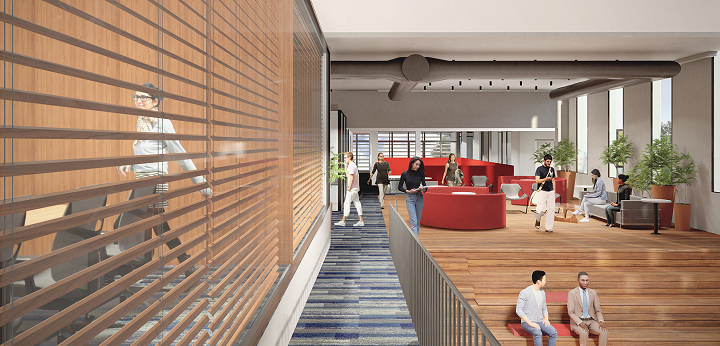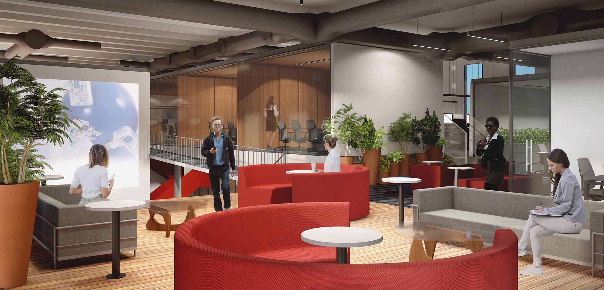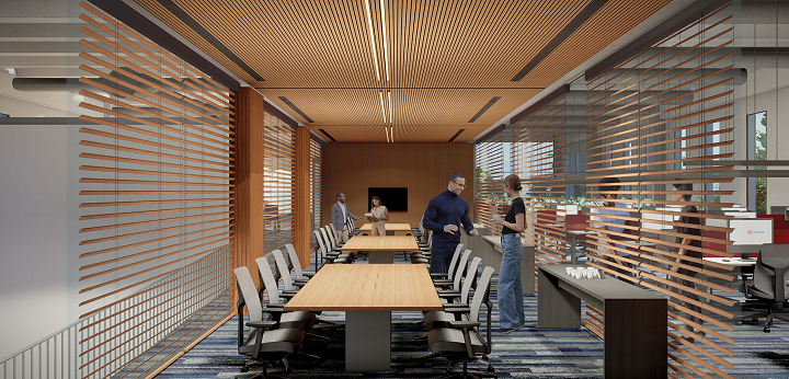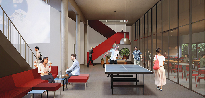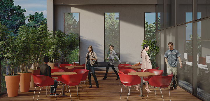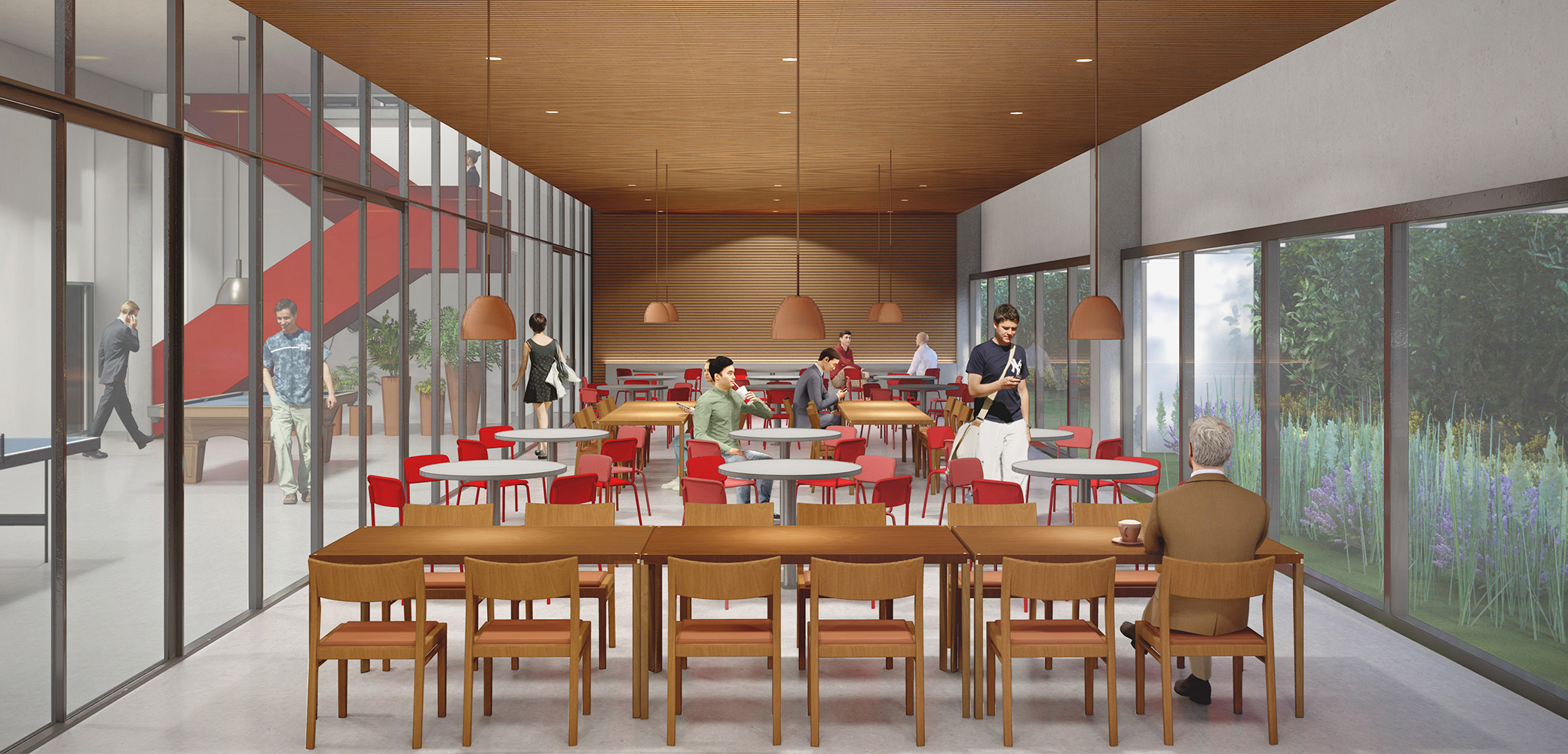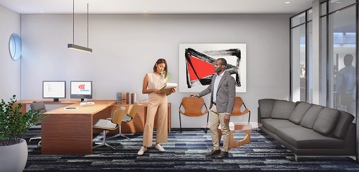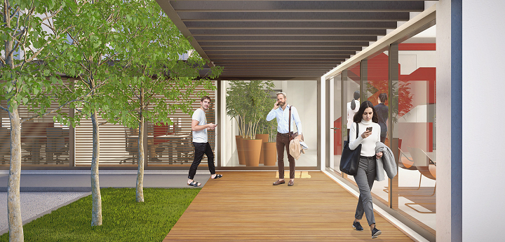 O projeto consiste na reforma de um edifício de dois pavimentos, já existente, que se transformou em um novo espaço de trabalho, a sede administrativa, refletindo os ideais da CLAMPER por meio de sua forma e conteúdo. A fachada foi reconfigurada, incluindo novas e amplas aberturas que conectam o interior e exterior do edifício, trazendo os jardins para dentro e proporcionando iluminação natural. No primeiro pavimento, encontramos a recepção e as áreas comuns, como o restaurante, o café e as áreas de jogos, atendendo às demandas contemporâneas de trabalho, como flexibilidade, áreas de descompressão, horizontalidade, conforto e informalidade, além de atender às necessidades específicas do programa. O segundo pavimento possui conjuntos de mesas lineares de trabalho, setorizados de acordo com os vários departamentos, além de salas de reunião com layout flexível, salas privadas, cozinha integrada e um terraço. Os dois pavimentos estão conectados de duas maneiras. Primeiro, por meio de uma escada localizada em um hall de pé direito duplo, totalmente pintada de vermelho, inspirada nas cores do logotipo da empresa, que se estende pelas demais áreas de circulação vertical ao longo do edifício. Segundo, através de uma grande arquibancada-escadaria, com amplos degraus e largos pisos que não apenas permitem a passagem, mas também incentivam a interação entre as pessoas. Esses espaços interativos comuns não só oferecem um alívio do estresse e relaxamento, como também estimulam o trabalho e a produtividade.