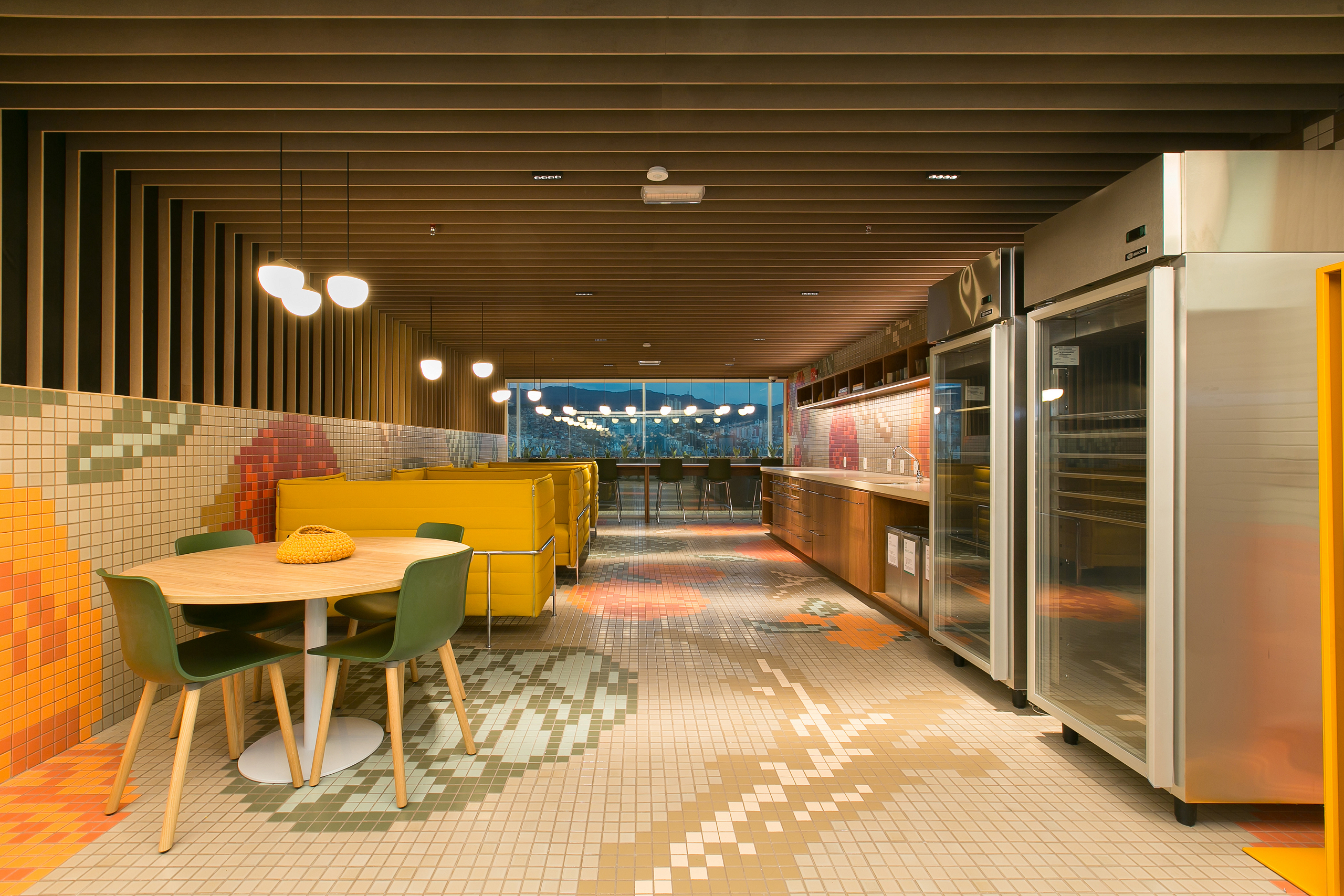 Em 2019, desenvolvemos mais um projeto para o Centro de Engenharia do Google, que consistiu na renovação do 16o pavimento (inaugurado em 2016) e em uma nova expansão para o 5o andar. Mais do que uma simples reforma e expansão, este projeto representa uma evolução do que já havia sido feito previamente por nós. Ampliamos e reinterpretamos os conceitos originais do escritório que se baseiam na convivência de referências globais, no lado cosmopolita e universal do Google, em paralelo com narrativas e histórias locais.