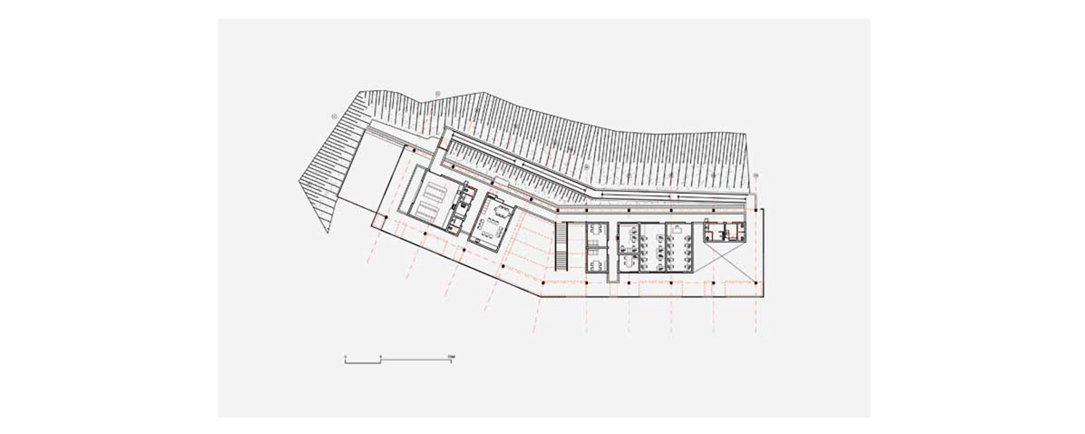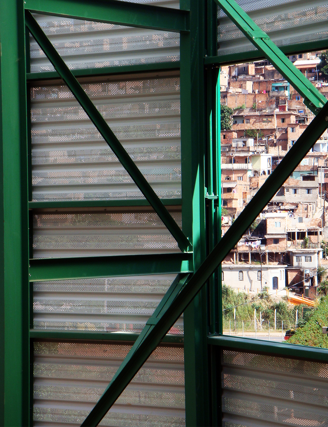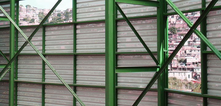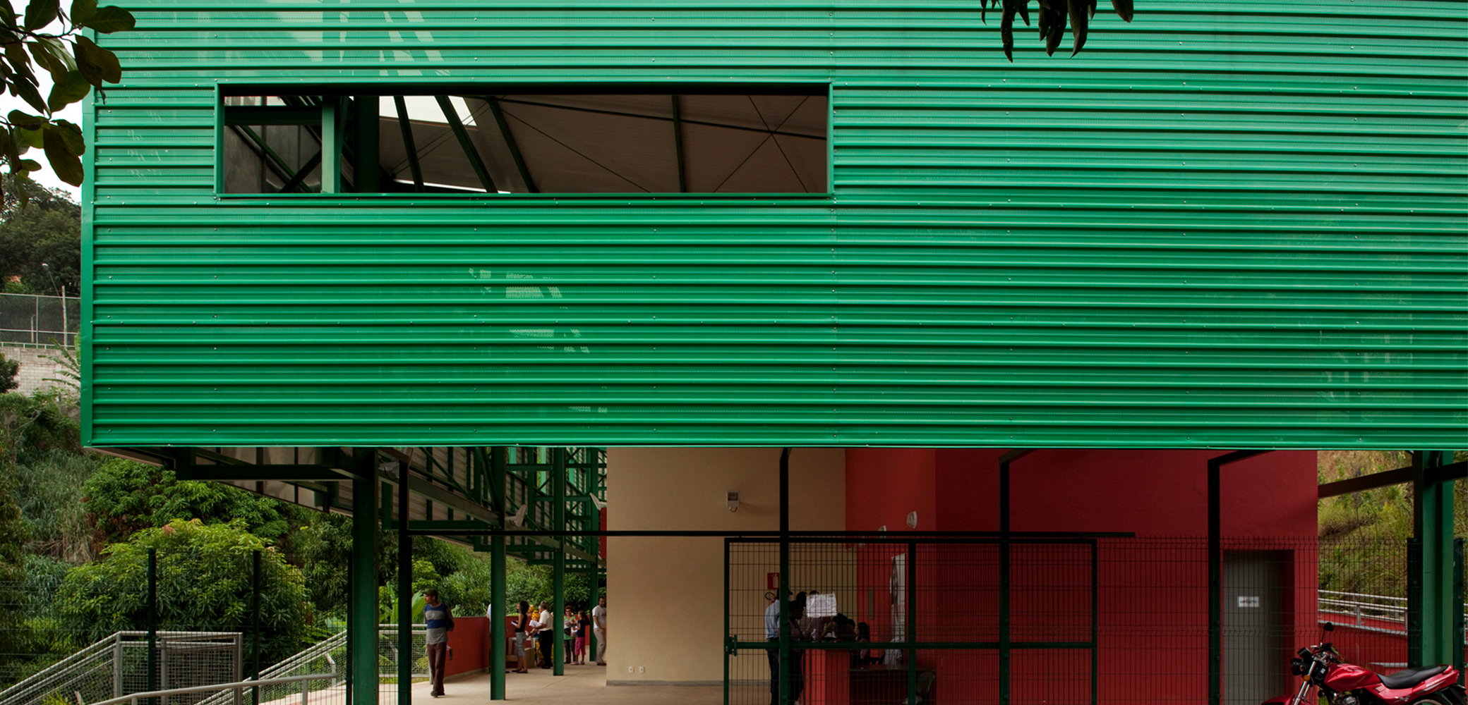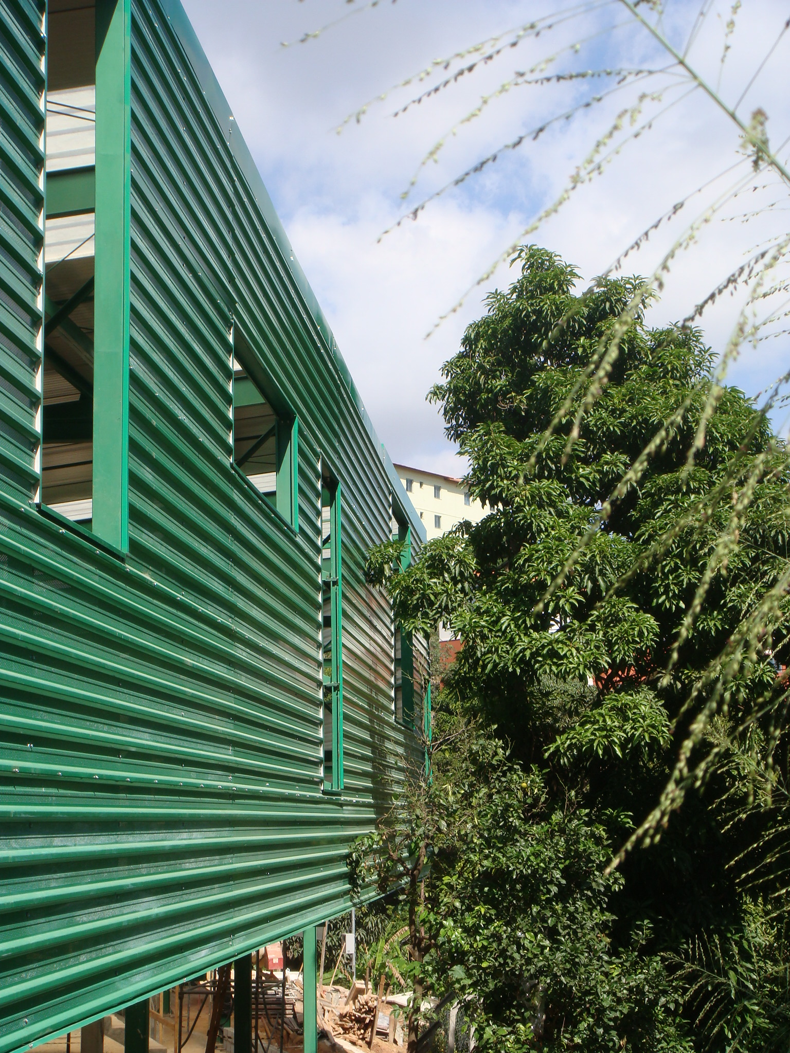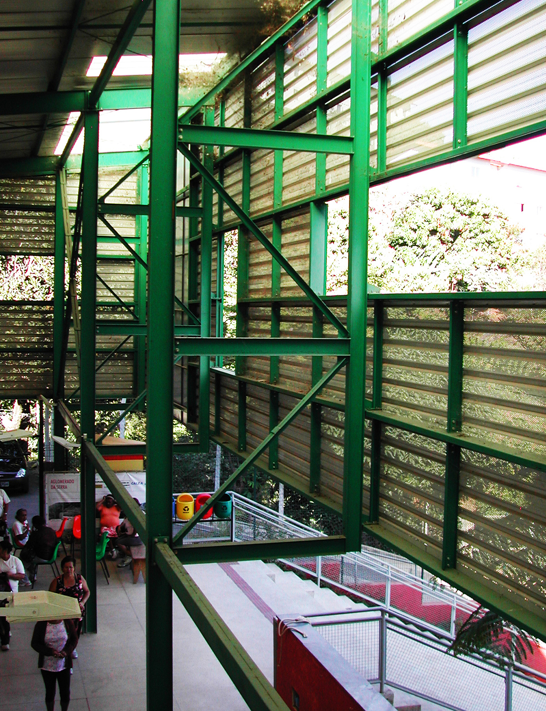 Dois sistemas diferentes foram usados na construção: estrutura metálica pré-fabricada para a cobertura e o sistema de alvenaria convencional para vedações. Primeiramente, foi construída a cobertura proporcionando abrigo para os trabalhadores durante o restante da construção. Esse telhado independente além de proteger a edificação da insolação direta e da chuva, cria um espaço aberto totalmente integrado com a área externa. O prédio mantém-se aberto, acessível, convidativo ao usuário. A cobertura de metal possui diversas aberturas que enquadram parte da paisagem do bairro e claraboias, garantindo luz e ventilação por toda a edificação.
