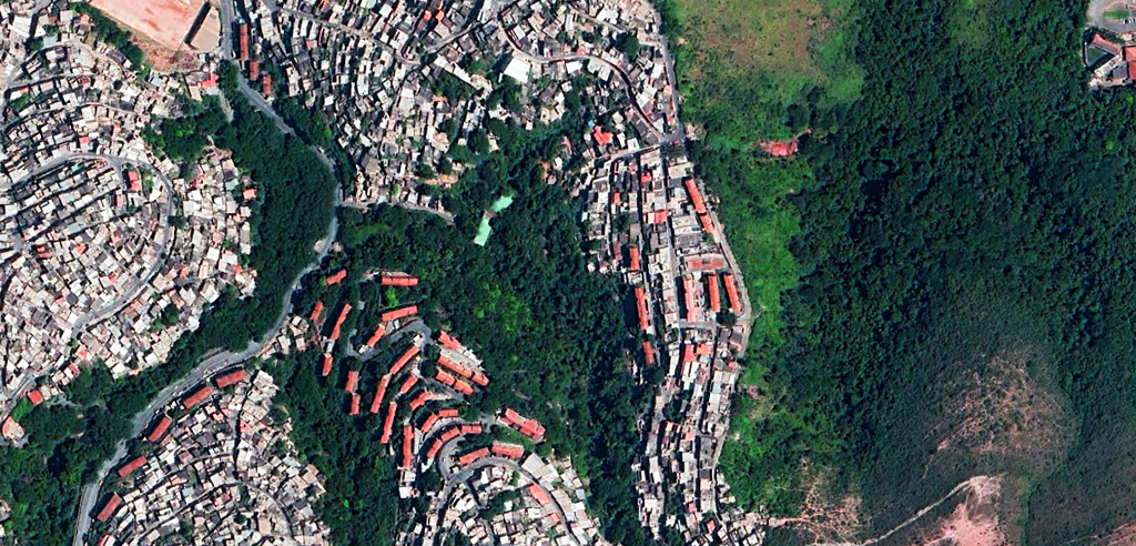 Aglomerado da Serra, Belo Horizonte, MG, Brasil 2009Parque da Terceira Água [H3O] O conjunto de vilas e favelas da Serra – Aglomerado da Serra – é um dos mais amplos da Região Metropolitana de Belo Horizonte e está situado na encosta da Serra do Curral. Ocupa uma área de 1.495.579 m2 e é, segundo a Prefeitura, formado por seis vilas: Marçola (também conhecida como favela Cabeça de Porco), Nossa Senhora de Fátima, Nossa Senhora Aparecida (conhecida como favela do Pau-Comeu), Nossa Senhora da Conceição, Cafezal e Novo São Lucas. A população local, a imprensa e alguns estudos sobre o Aglomerado identificam 11 vilas como componentes desse espaço, entre elas a vila Fazendinha e a vila Antena. Essas são denominações não-oficiais, criadas pela população local para se diferenciarem de espaços marginalizados pela cidade como a favela do Cafezal ou a Pau-Comeu, conhecidas como lugares de muita violência e criminalidade. O aglomerado abriga cerca de 50.000 habitantes alojados em 15.000 moradias.