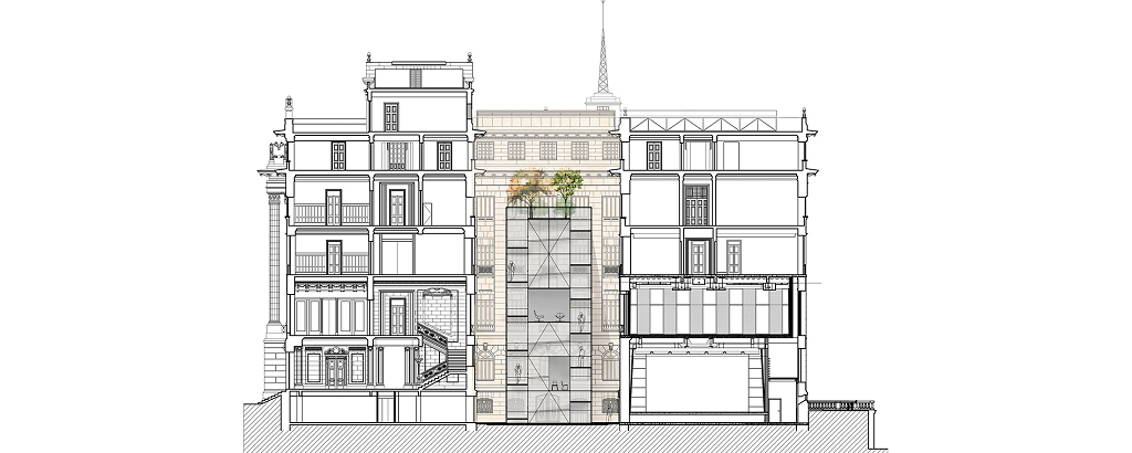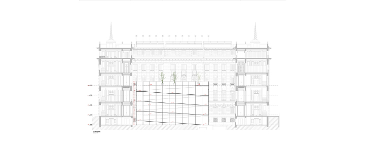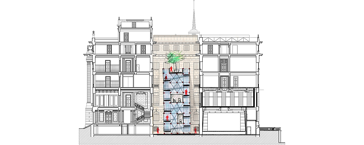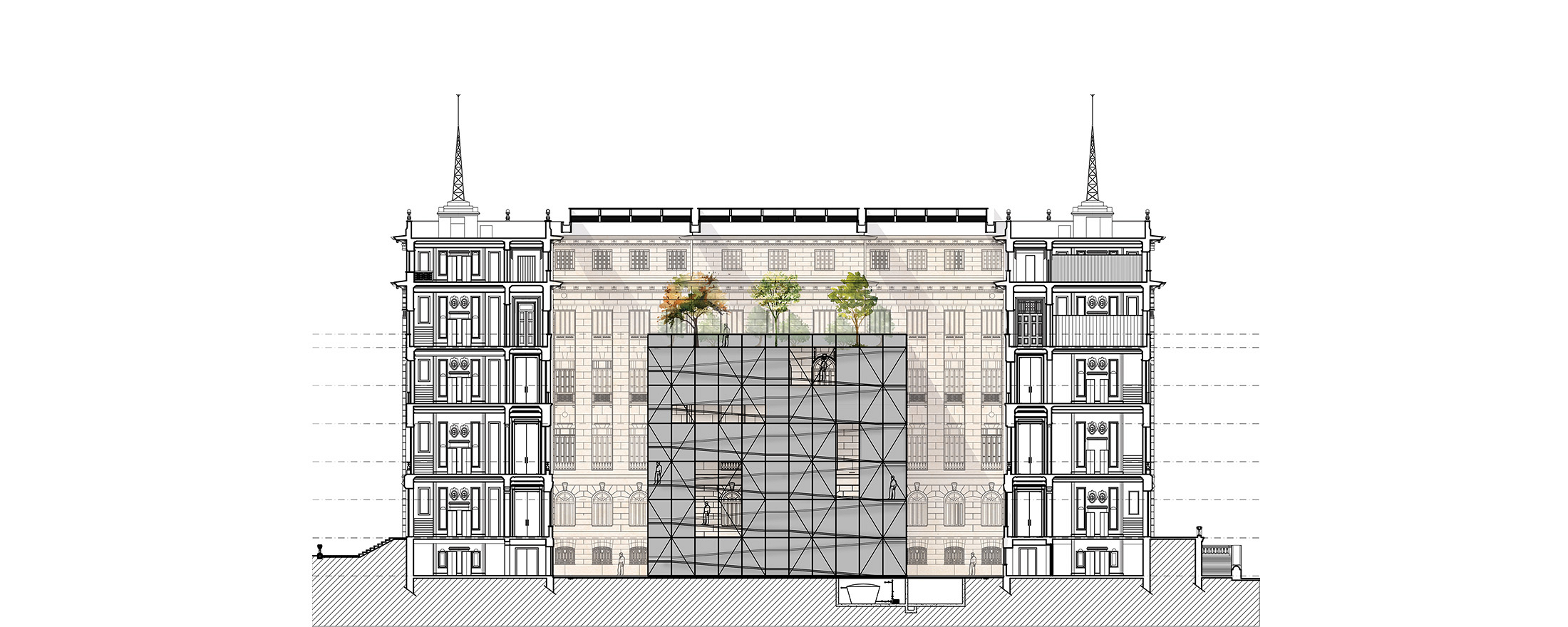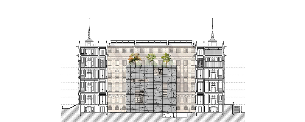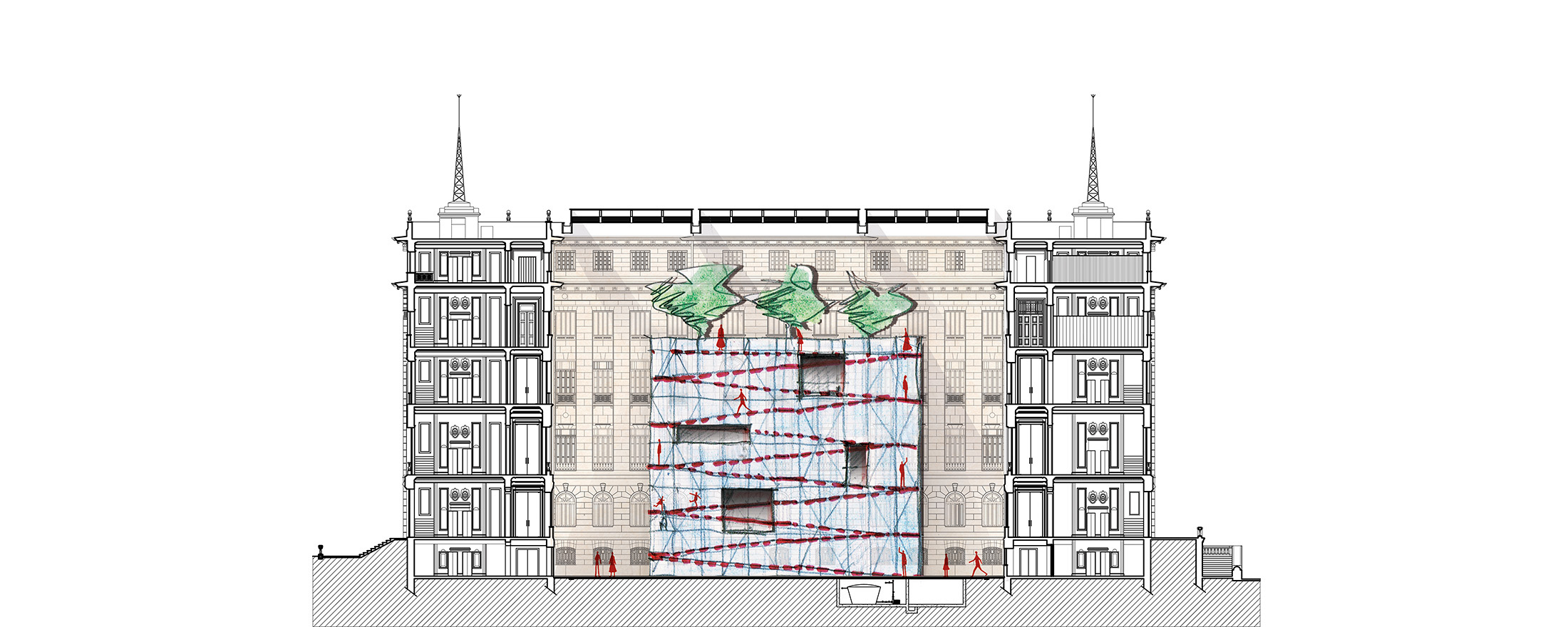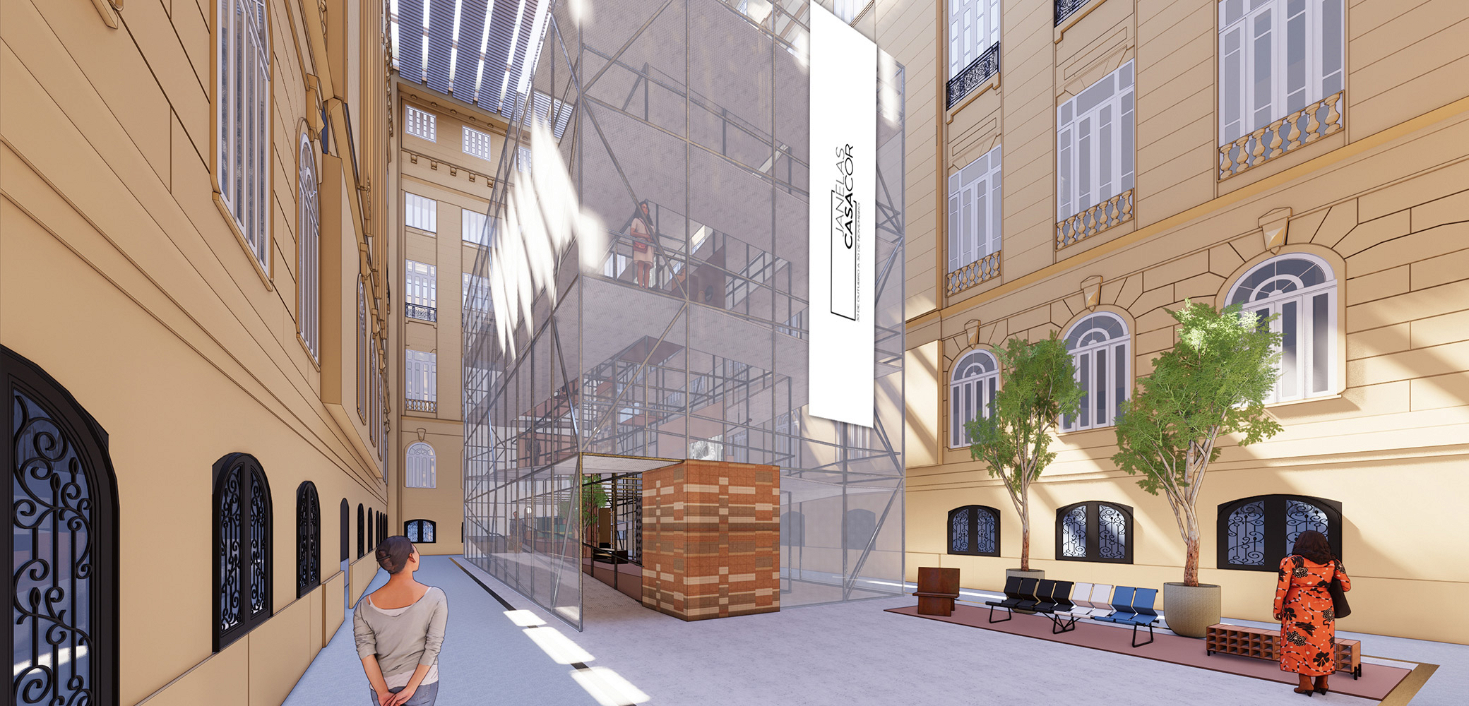 Belo Horizonte, MG - Brasil 2020O projeto se fundamenta nas propostas radicais de arquitetura de vanguarda das décadas de 1950 e 1960 — notadamente as visões de Yona Friedman, Cedric Price e Buckminster Fuller — que idealizavam soluções de velocidade, leveza e flexibilidade como resposta aos desafios urbanos e sociais. Em um cenário global cada vez mais volátil, esses conceitos se mostram cruciais para a arquitetura contemporânea. Neste contexto, propomos a inserção de um pavilhão no vazio central do edifício histórico do CCBB. A estrutura atua como um dispositivo espacial dinâmico, concebido para gerar experiências inesperadas e visadas surpreendentes do pátio interno. O ponto culminante da ascensão é uma praça suspensa que se abre totalmente, integrando a cobertura zenital e, metaforicamente, trazendo o céu para dentro do coração do CCBB.