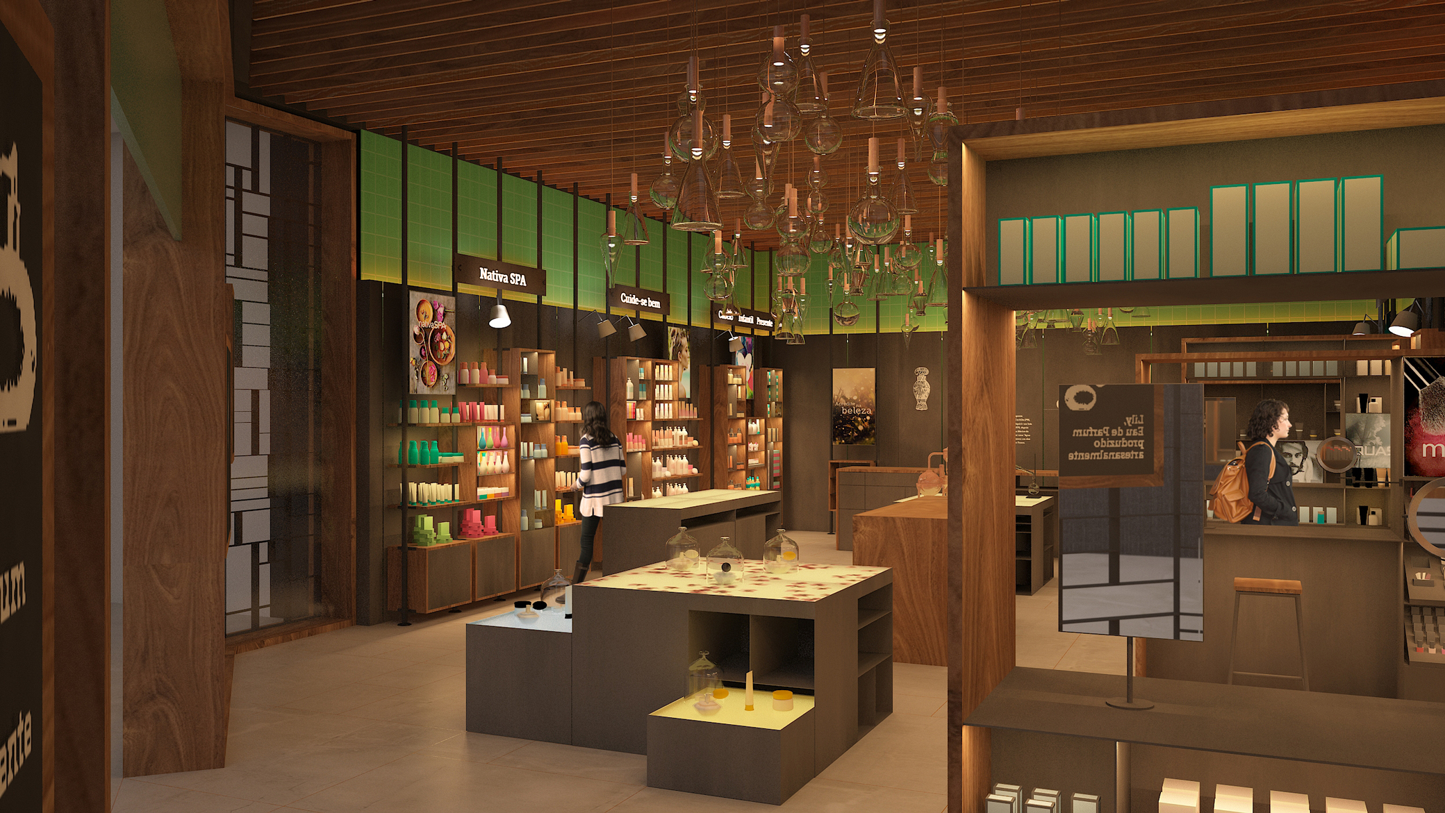 Brasil 2016-2017No projeto da nova loja d’O Boticário, o desenho do mobiliário, o grafismo da fachada e a atmosfera da loja são fruto da inspiração nos chamados “gabinetes de curiosidades”. Estes ambientes, surgidos durante o Renascimento na Europa e hoje considerados antecessores diretos dos museus, abrigavam elementos dos três ramos da biologia considerados na época – animal, vegetal e mineral – em coleções de anotações, desenhos, pinturas, objetos, fósseis, etc. Para organizar elementos tão distintos, os gabinetes de curiosidades possuíam uma grande variedade de dispositivos “expográficos” a partir de uma modulação ortogonal. A partir do sistema geométrico da organização espacial dos gabinetes de curiosidades, criamos um grid parametrizado e exclusivo, que se aplica em diferentes escalas, técnicas construtivas e materiais em diversos elementos da loja: piso, fachada, mesas e expositores verticais.