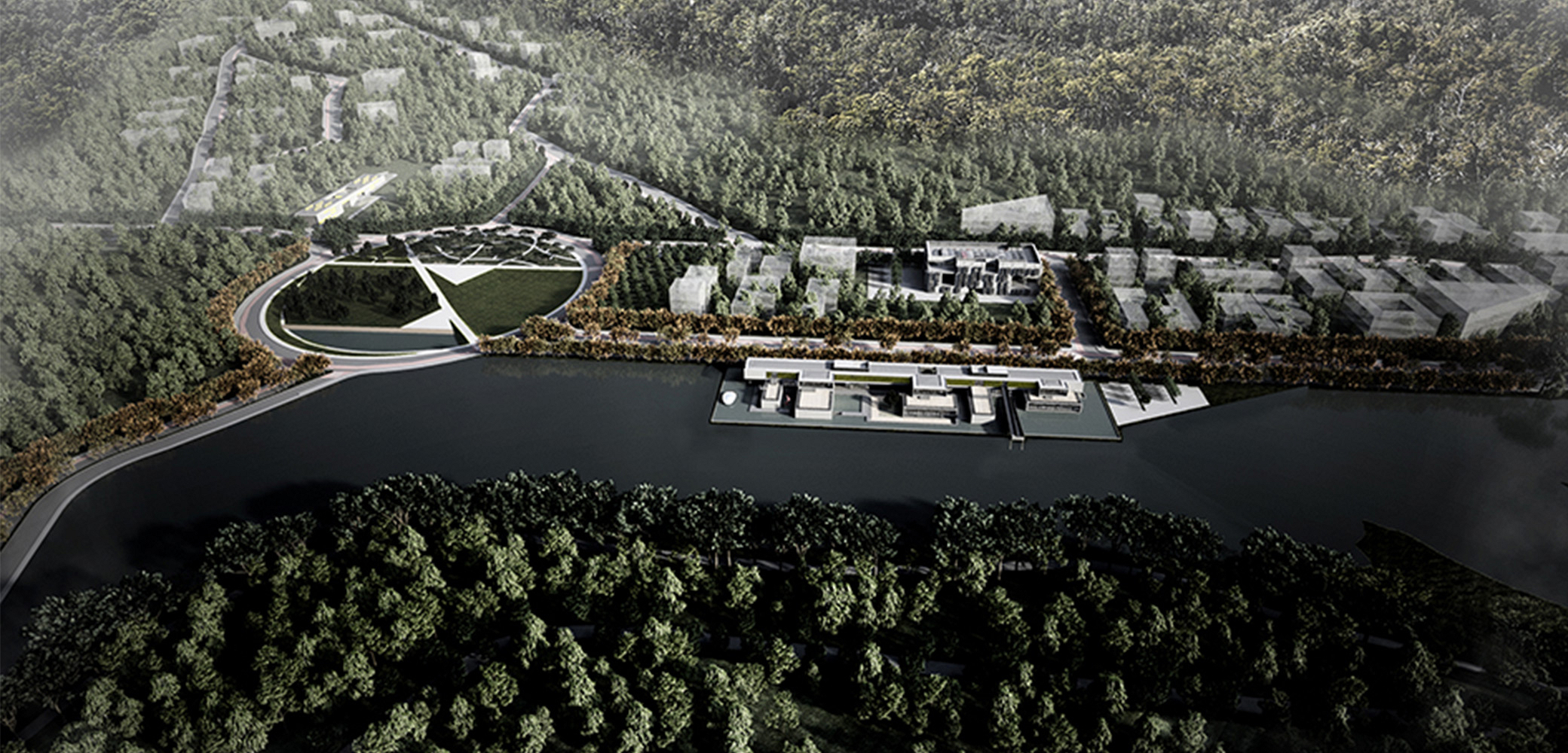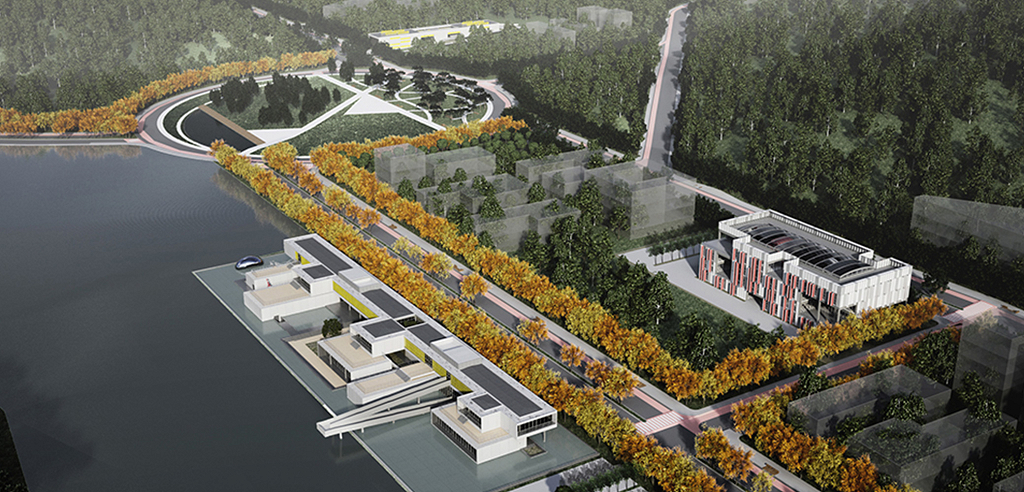 As principais manchas de ocupação decorrem diretamente do mapa de declividades, na medida em que são preservadas as áreas com inclinação superior a 25%. Esta estratégia permite que os dois vetores de ocupação por edifícios estejam cercados por áreas verdes preservadas pelo projeto. Um terceiro vetor, definido pelo futuro Parque Municipal de Itajubá, articula-se com os dois anteriormente citados em uma APP – área de preservação permanente. Neste local, propõe-se que a articulação espacial dos três vetores se estabeleça a partir da criação de uma grande praça circular, local de caráter essencialmente público, um grande ponto de encontro com densa arborização e uso paisagístico, científico e recreativo da água. Dadas suas características, é atribuído a este espaço o nome de Ágora, como nas praças públicas da cidade grega clássica.