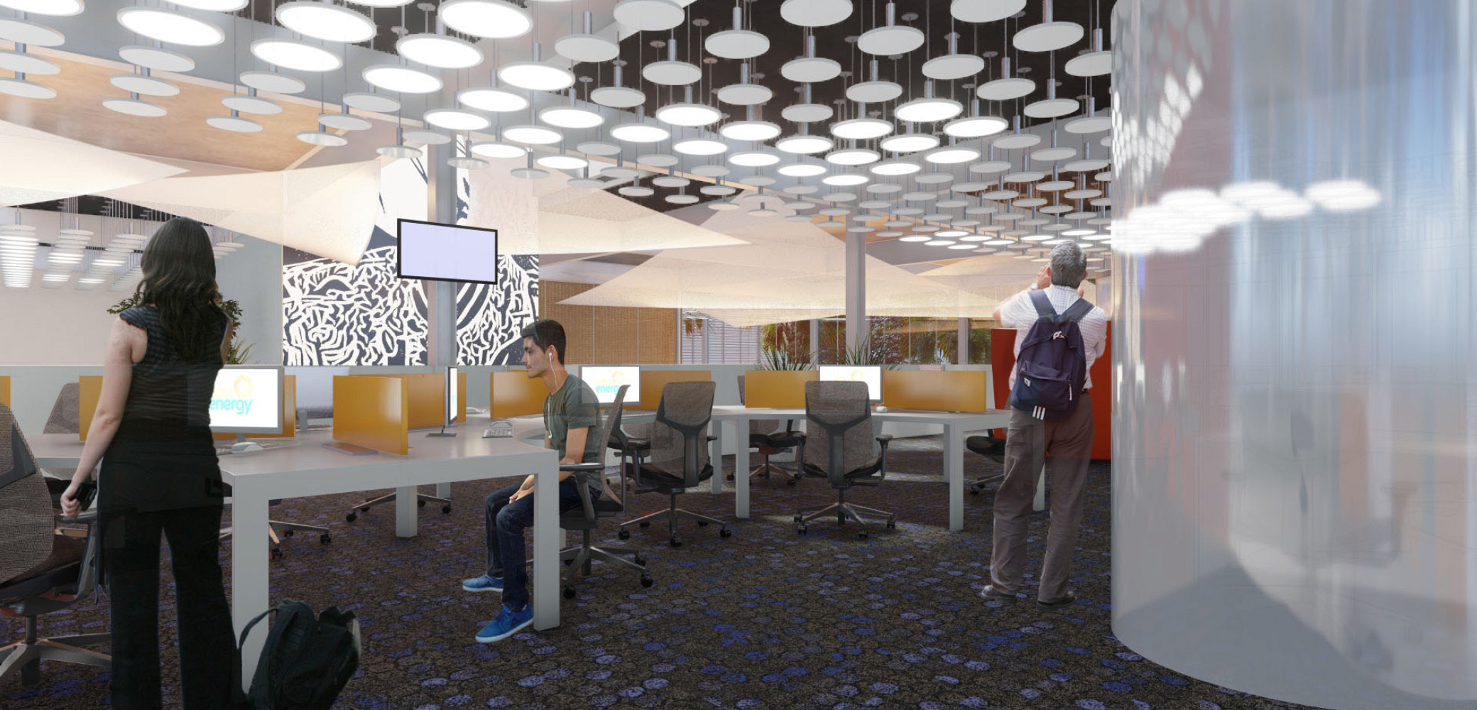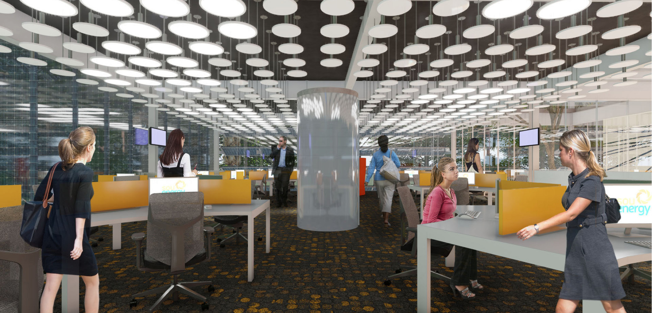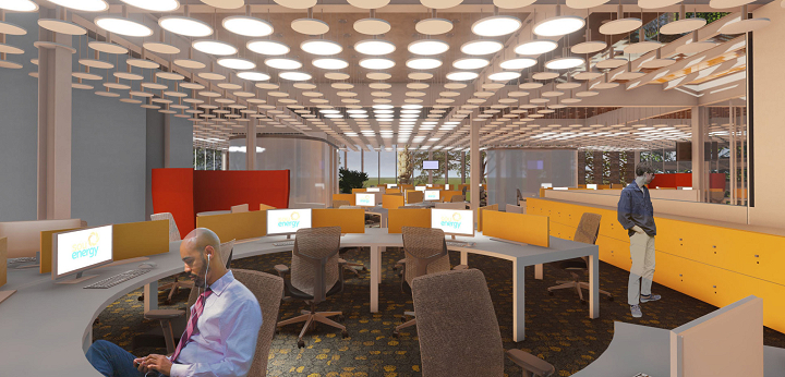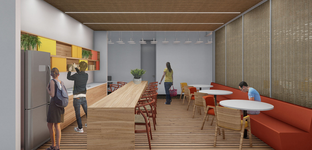 Pretende-se fazer do escritório um ambiente integrado, inspirado nas novas tendências de espaço de trabalho – flexibilidade, áreas de descompressão, horizontalidade, conforto e informalidade – mas também estampar marcos da cultura local e da própria empresa a partir do tratamento paisagístico, da utilização de texturas, cores e referências artístico-culturais em suas superfícies.